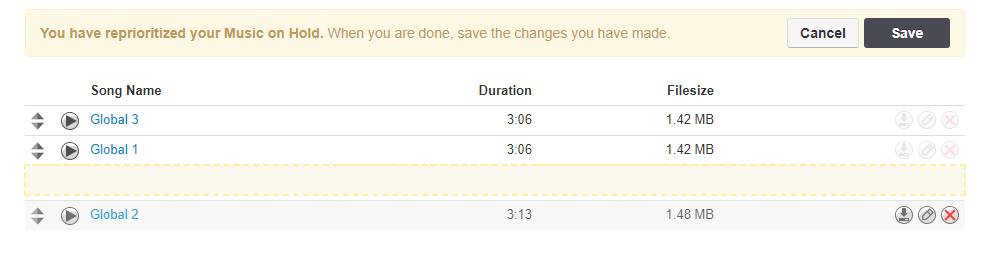 - Randomize Music on Hold: Check to shuffle the sound files.