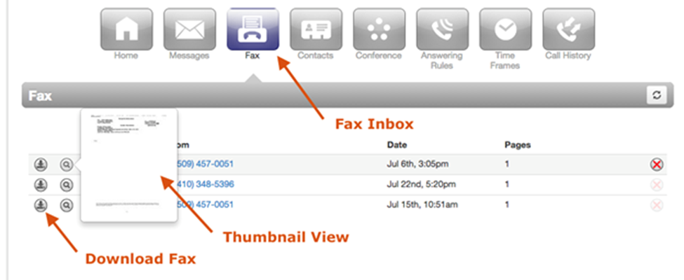 Note: Inbound faxes are retained until they are deleted in the portal.