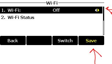 5.) Turn on the Wi-Fi if it is off using "<" and ">"